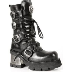 - Details Black New Rock Boots with Zipper, Lacing, 4 Buckles and Block-Heel in Metal-Look from the New Rock M8 Collection. Additional Information Item Number M.373-S3 Weight in kg 4 Manufacturer New Rock Leg Height in cm No Heel Height in cm 8.5 Platform Height in cm 4 Heel Type Block