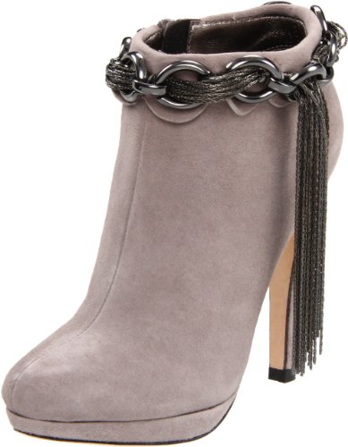 A Sexy Suede Ankle Boot With Side Zip And Metal Chain Tassle