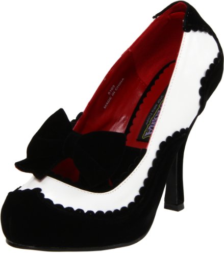 Funtasma 4 1/2 Inch Heel, 3/4 Inch Hidden P/F Spectator Pump W/ Large Bow Wht Pat-Blk Velvet UK 8