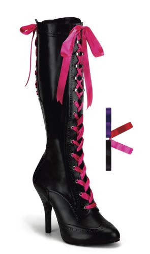 4 1/2 Inch Heel Sexy Knee High Spectator Boot Two Tone With Ribbon ... Pleaser Women's Tempt-125 Lace Up ... Lace Up Boots 4 1/2 Inch Heel Black Knee High Boot ...