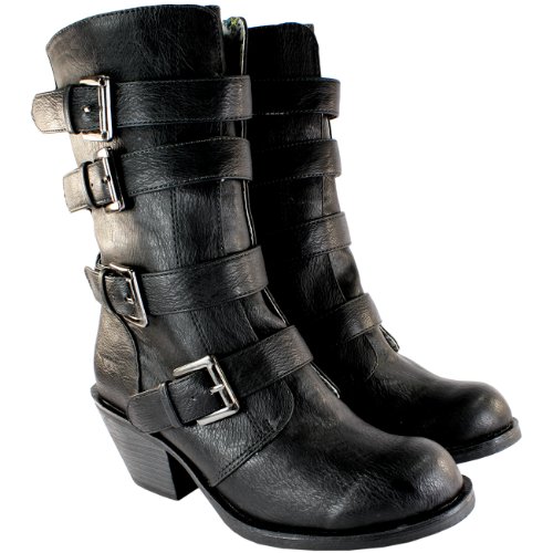 Description of *WOMENS ROCKET DOG ROLLIN MID CALF BOOTS FOUR SILVER BUCKLE STRAPS UK SIZES 3-8